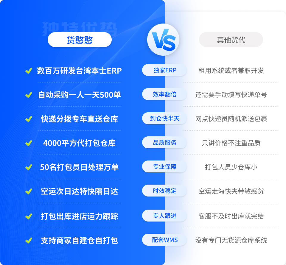 货憨憨----累计投入800万研发全链路ERP,自营4000平方东莞代打包仓库,提供全链路解决方案